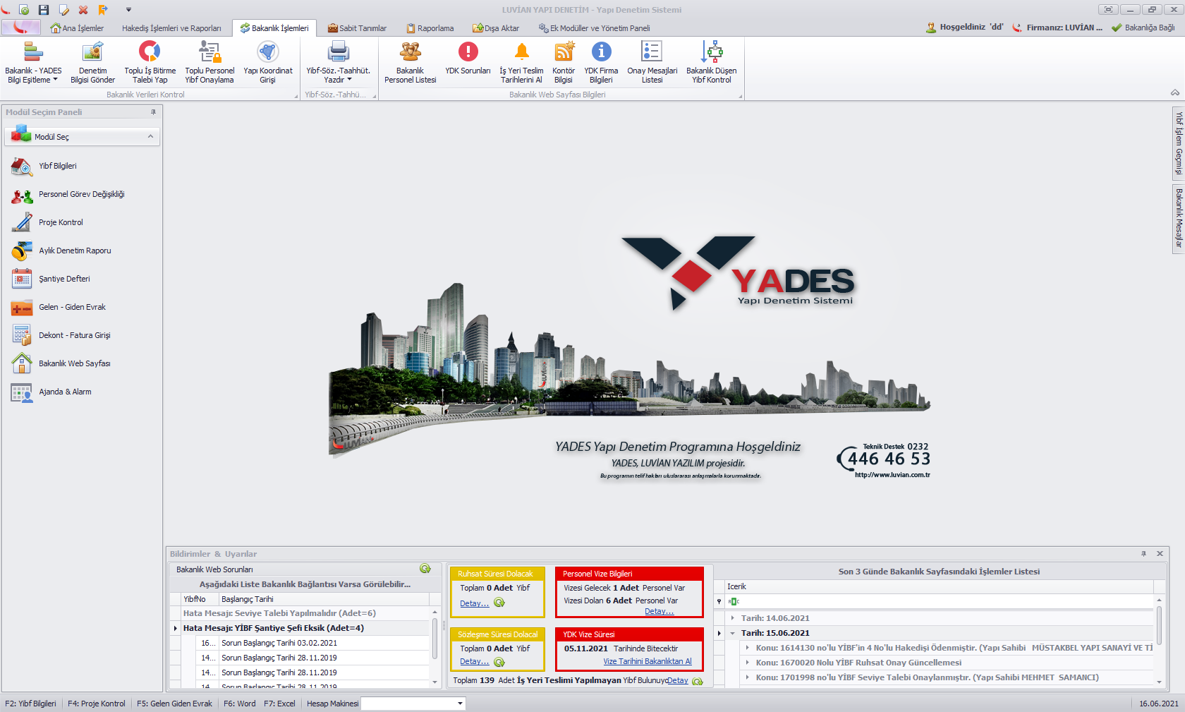 • Bakanlık işlemleri sekmesindeki YDK Sorunları formu düzenlendi. Daha önce sadece güncel yibflere ait sorunları alırken artık şantiye şefi,müellif, ruhsat bekleyen v.s. tüm yibflerdeki sorunların listesini toplu olarak görebilirsiniz.