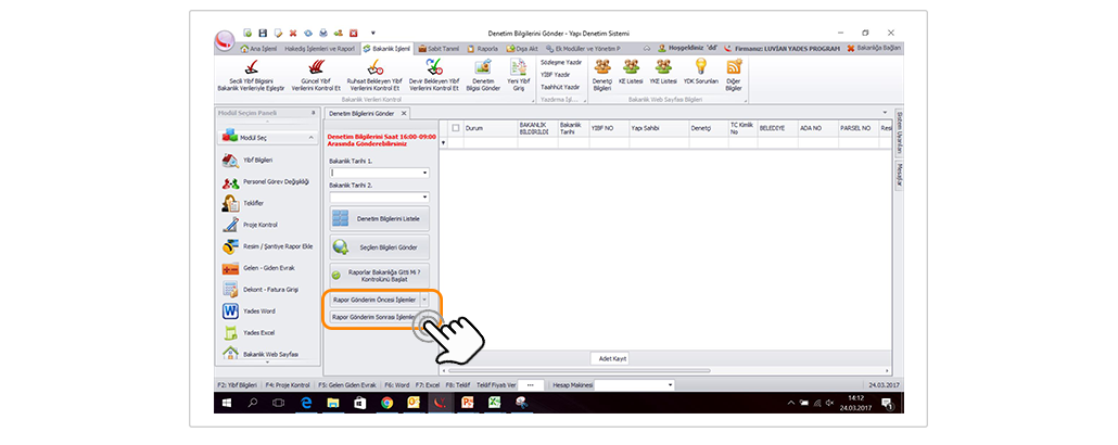 • Bakanlığa Denetim Bilgisi Gönderme Formunda Küçültülmüş Resim ve Daha Önceki Gönderim Raporlarının Silinmesi Sağlandı.